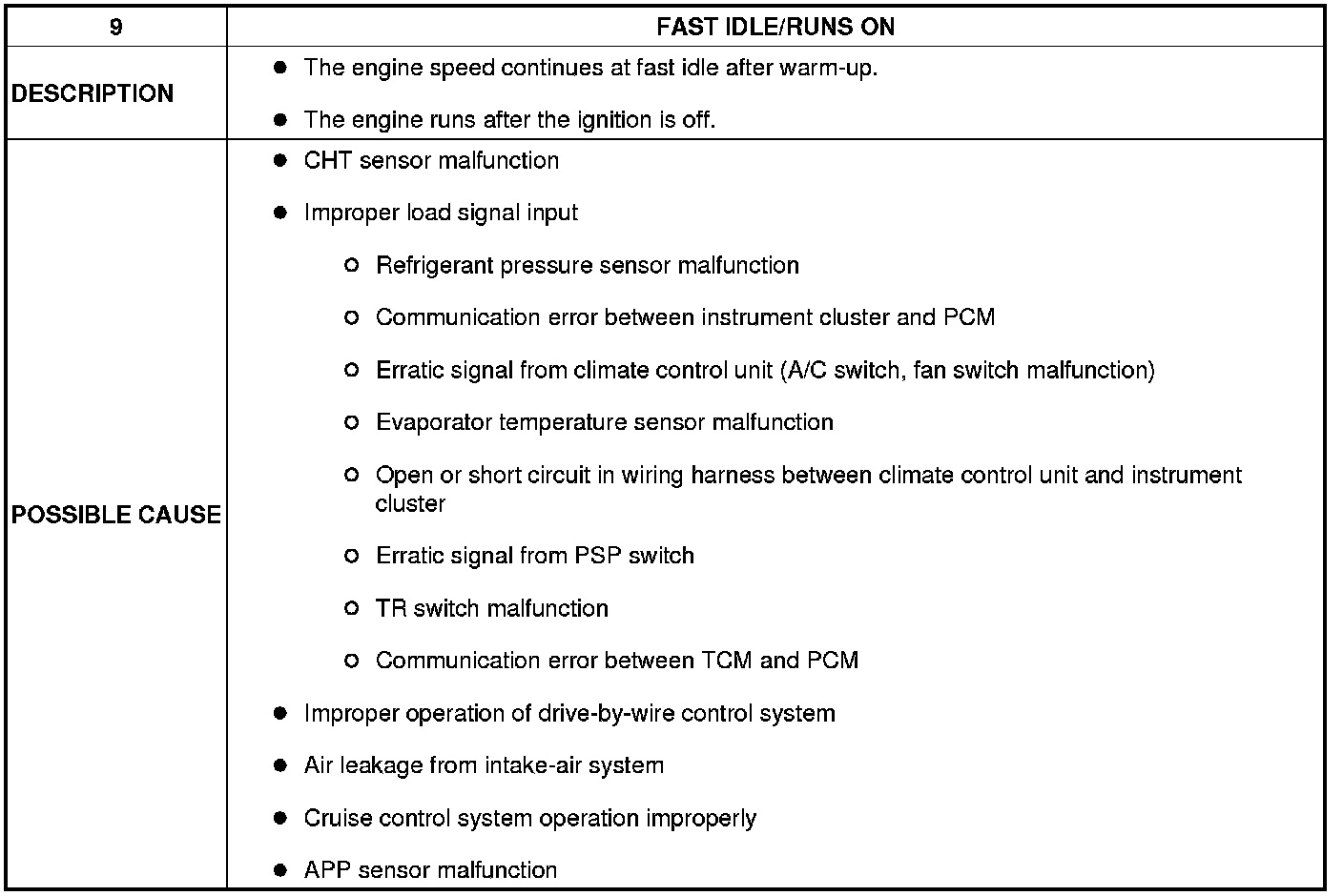 No. 9 Fast Idle/Runs ON