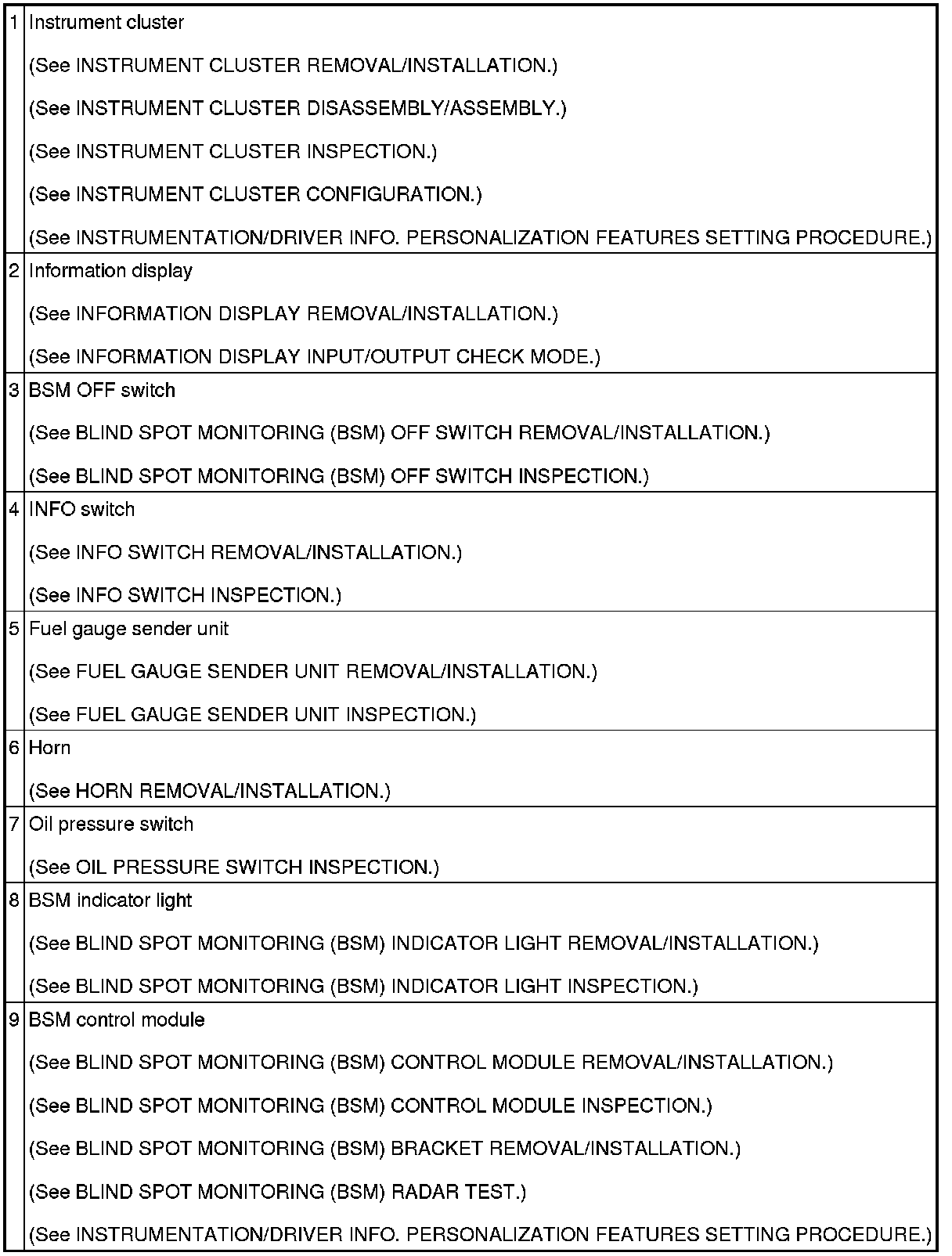 INSTRUMENTATION/DRIVER INFO. LOCATION INDEX