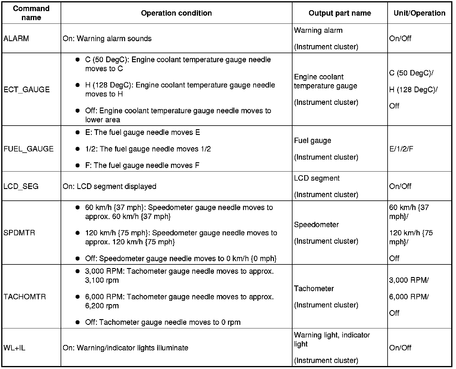 ACTIVE COMMAND MODES TABLE [INSTRUMENT CLUSTER]