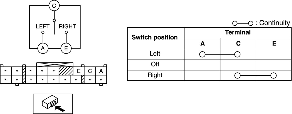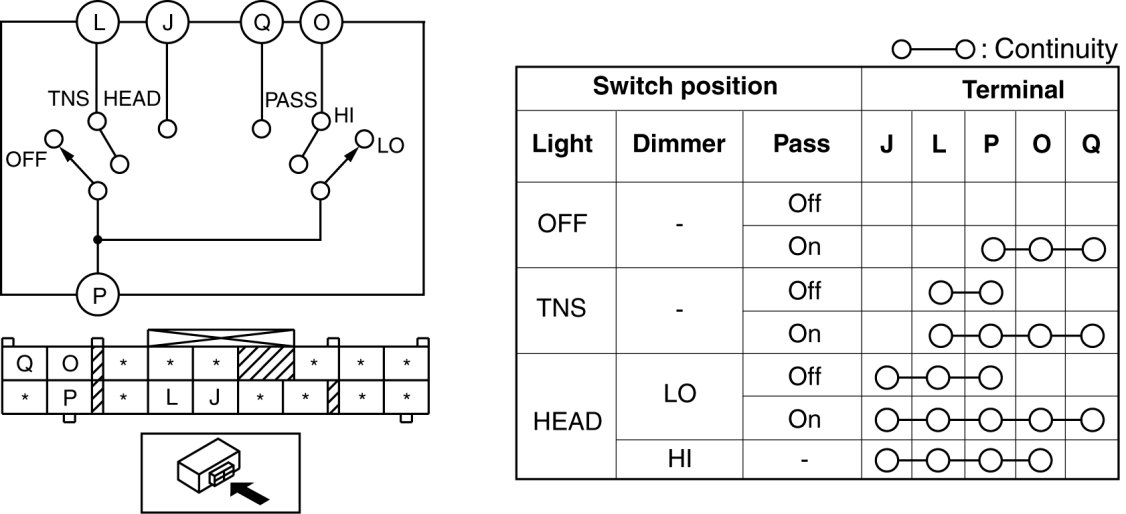 4. Verify that the continuity between the light switch terminals is as indicated in the table.