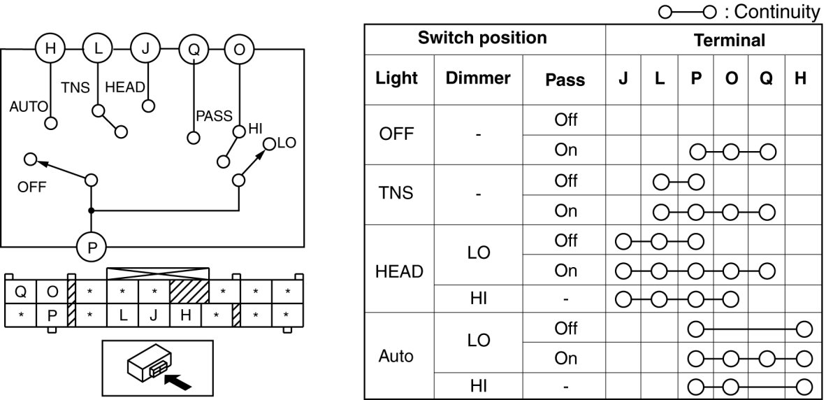 Headlamp Switch: Testing and Inspection