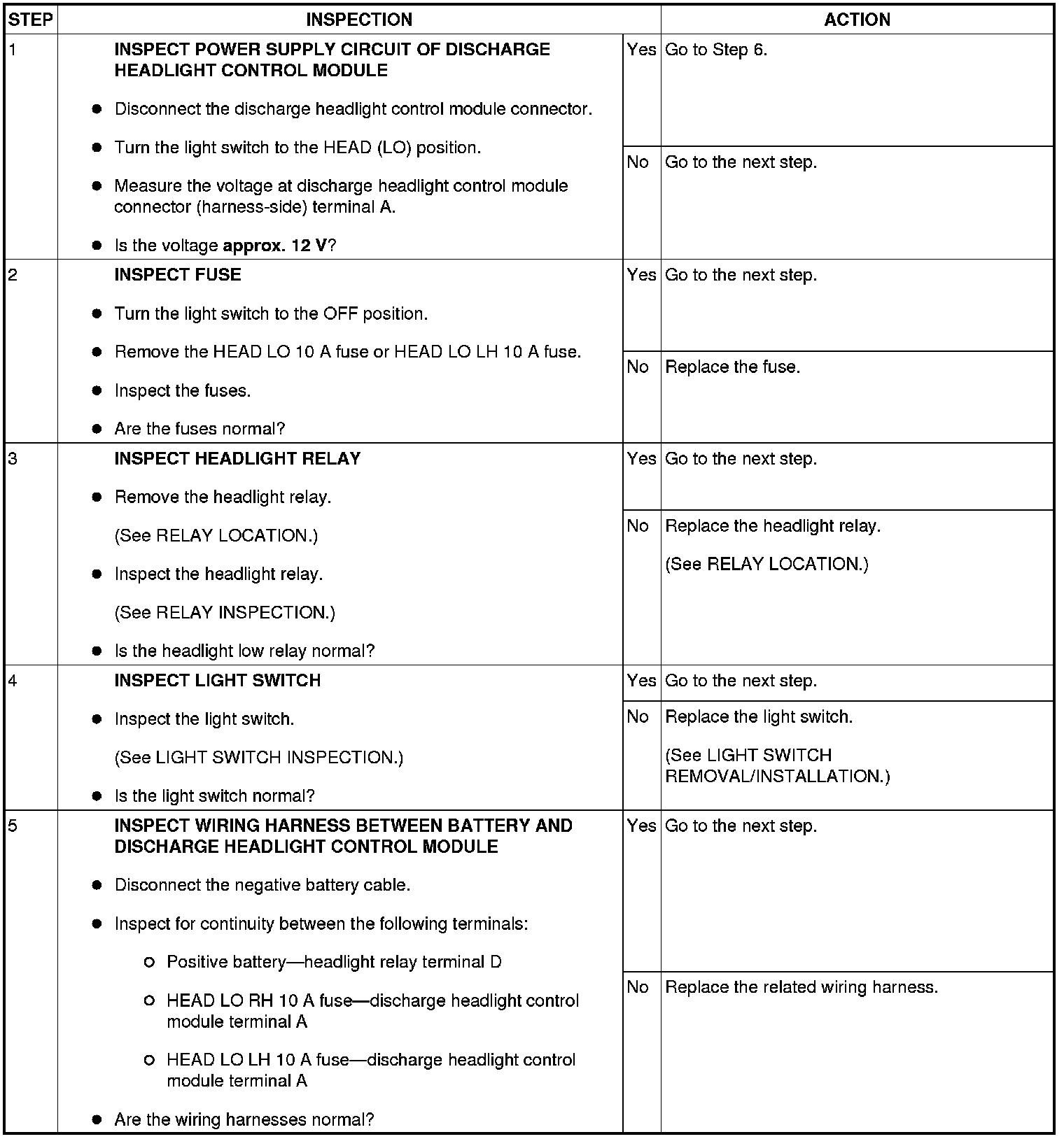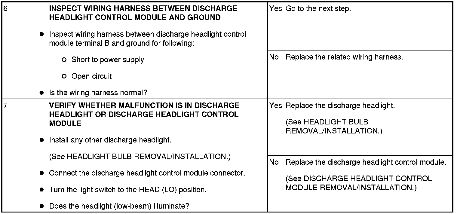 DISCHARGE HEADLIGHT SYSTEM INSPECTION