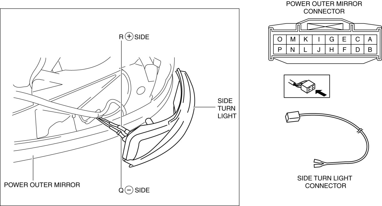 4. Verify that the continuity between side turn light terminals is as indicated in the table.