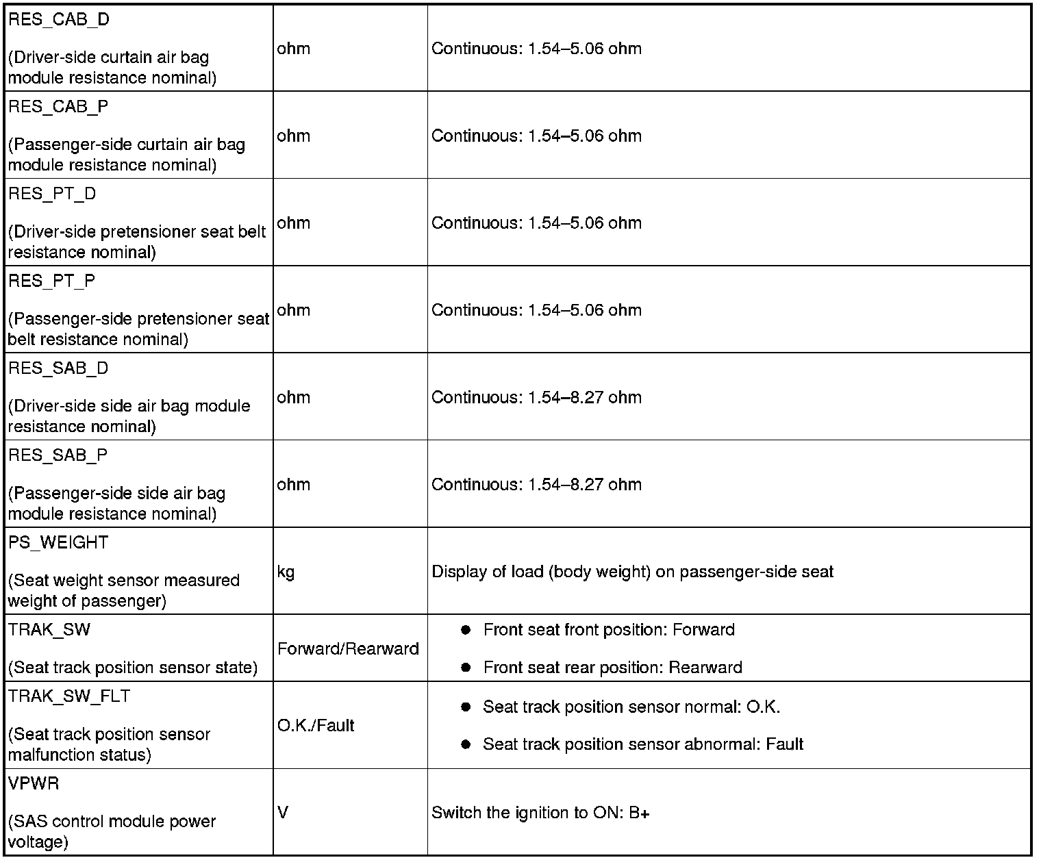 PID/DATA MONITOR TABLE