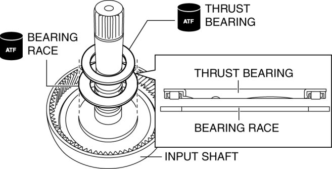 2. Install the bearing race and thrust bearing to the input shaft as shown in the figure.