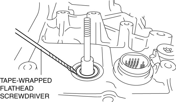 4. Remove and discard the oil seal using a tape-wrapped flathead screwdriver.