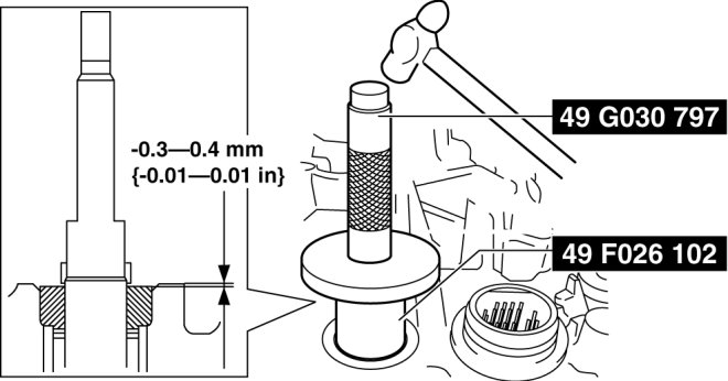 5. Using the SSTs and a hammer, tap a new oil seal so that the specified oil seal position is obtained.