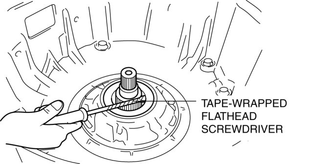 - The oil seal is easily damaged by the sharp edges of the torque converter splines. Do not let the splines contact the oil seal.