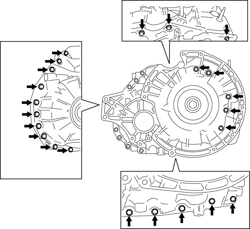 14. Clean the contact surface of the transaxle case and the converter housing and the bolt holes.