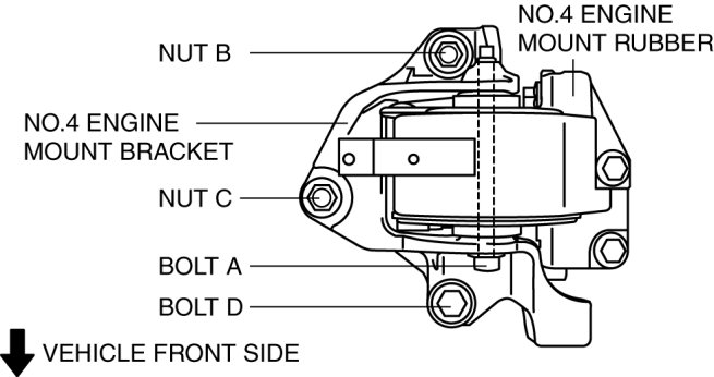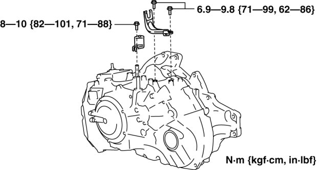 - Nut B, C, Bolt D: 67-93 Nm {6.9-9.4 kgf-m, 50-68 ft-lbf}