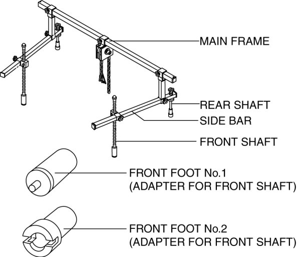 a. Install the front foot No.1 to the left front shaft of the SST, and then install the front foot No.2 to the right front shaft.