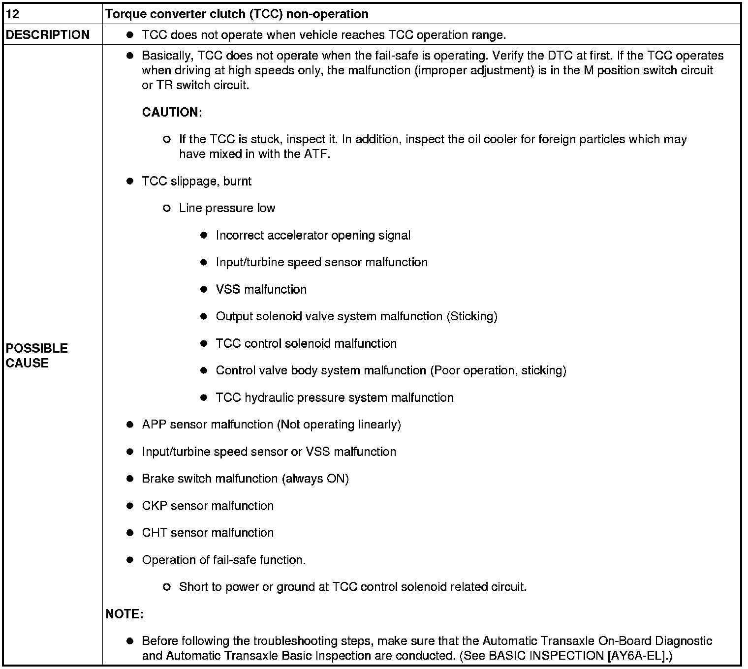 NO.12 TORQUE CONVERTER CLUTCH (TCC) NON-OPERATION [AY6A-EL]
