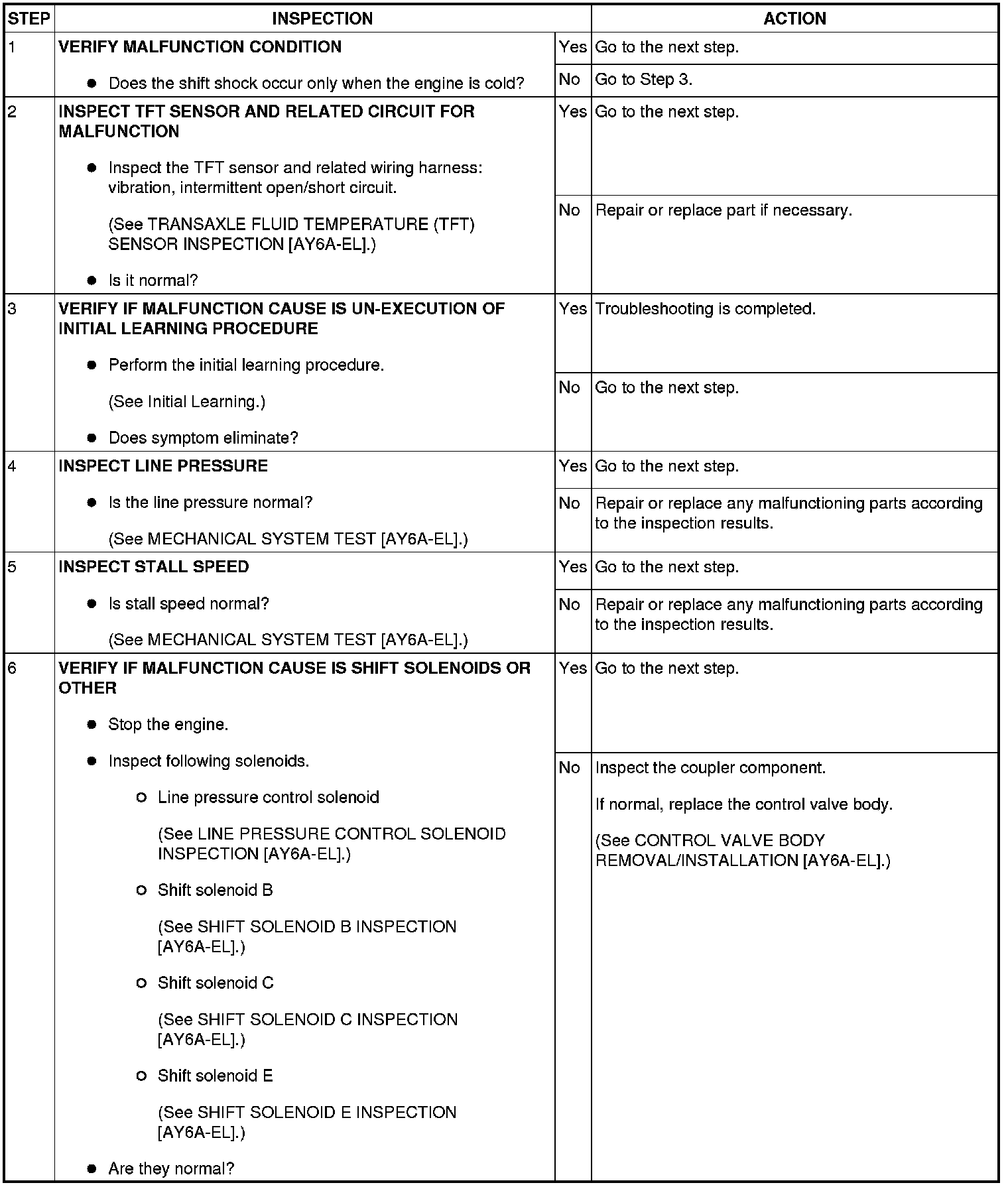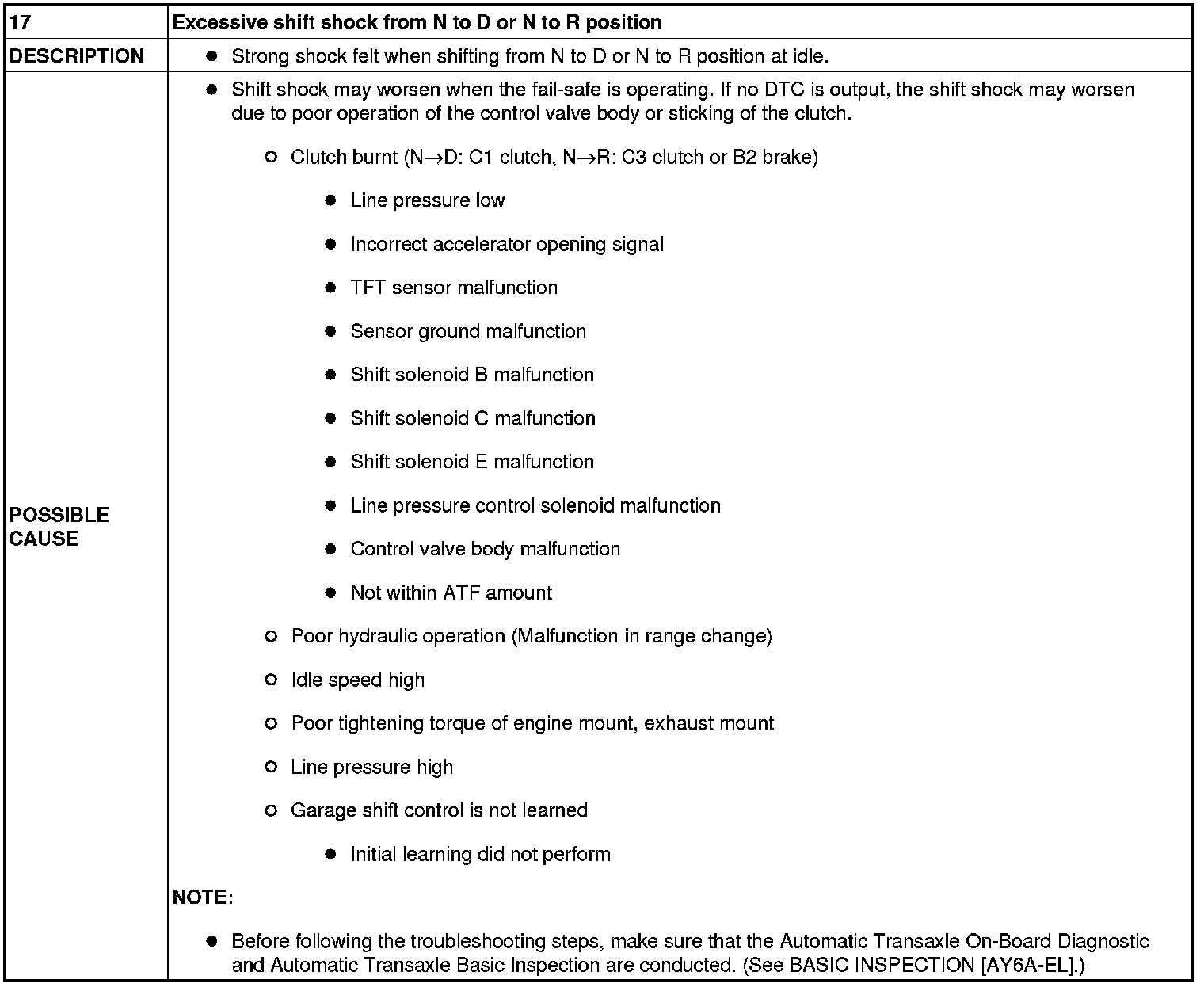 NO.17 EXCESSIVE SHIFT SHOCK FROM N TO D OR N TO R POSITION [AY6A-EL]