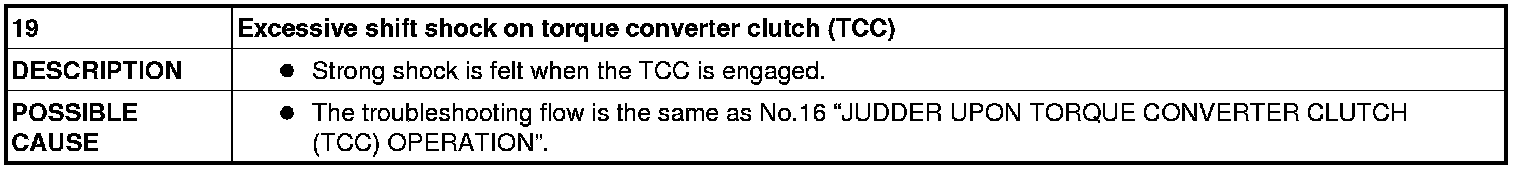 NO.19 EXCESSIVE SHIFT SHOCK ON TORQUE CONVERTER CLUTCH (TCC) [AY6A-EL]