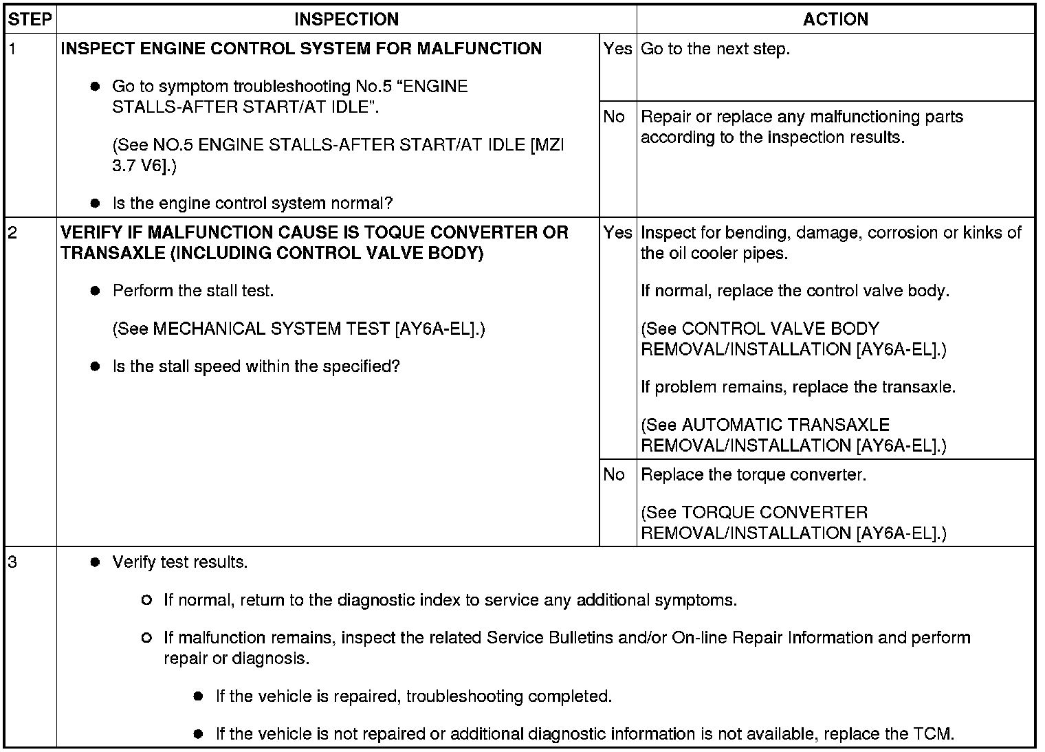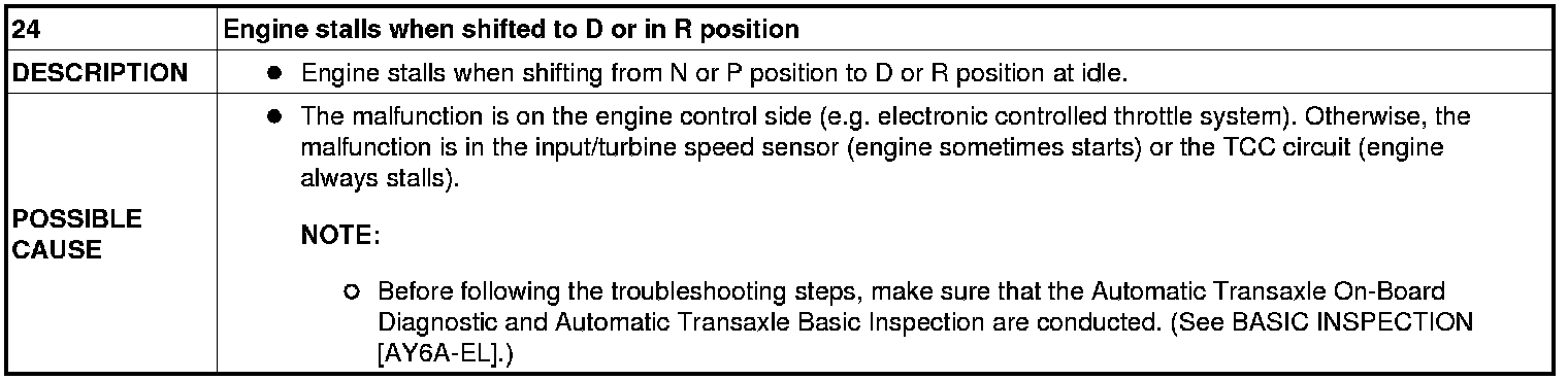 NO.24 ENGINE STALLS WHEN SHIFTED TO D OR IN R POSITION [AY6A-EL]
