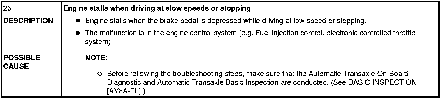 NO.25 ENGINE STALLS WHEN DRIVING AT SLOW SPEED OR STOPPING [AY6A-EL]
