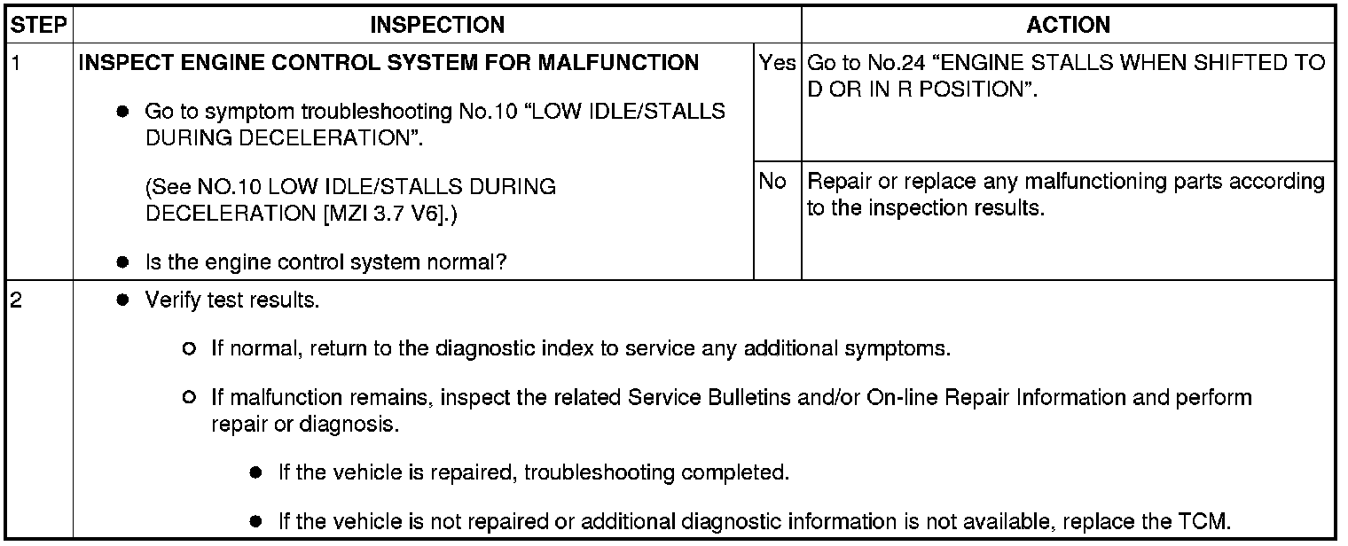 No. 25 Engine Stalls When Driving At Slow Speed Or Stopping
