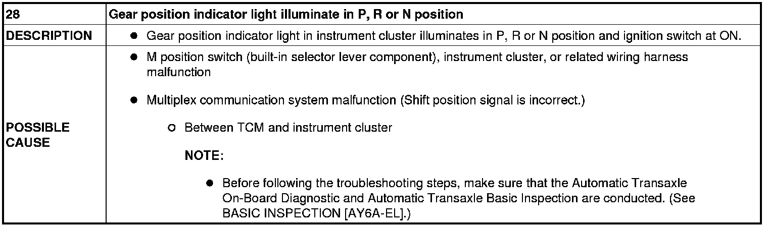 NO.28 GEAR POSITION INDICATOR LIGHT ILLUMINATE IN P, R OR N POSITION [AY6A-EL]