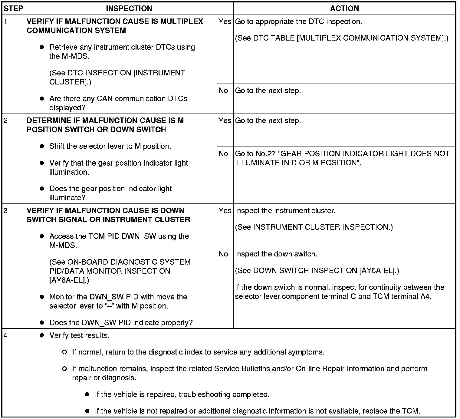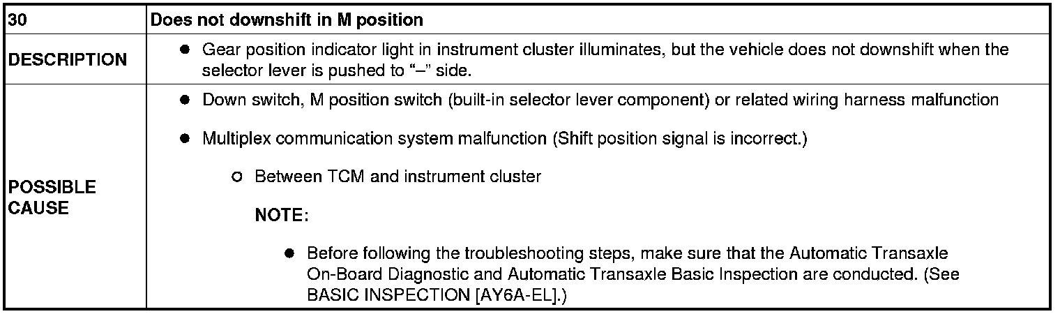 NO.30 DOES NOT DOWNSHIFT IN M POSITION [AY6A-EL]