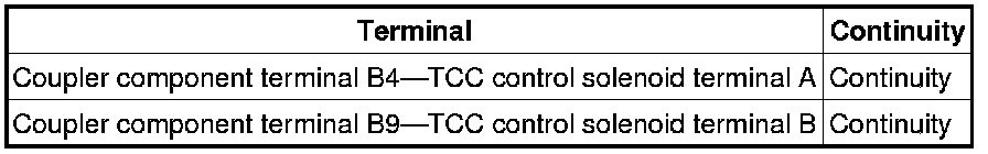 - Measure the continuity between coupler component terminal B4 and TCC control solenoid terminal A.