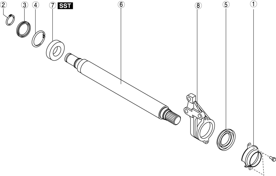 1. Remove the bearing from the joint shaft using the SST and a press.