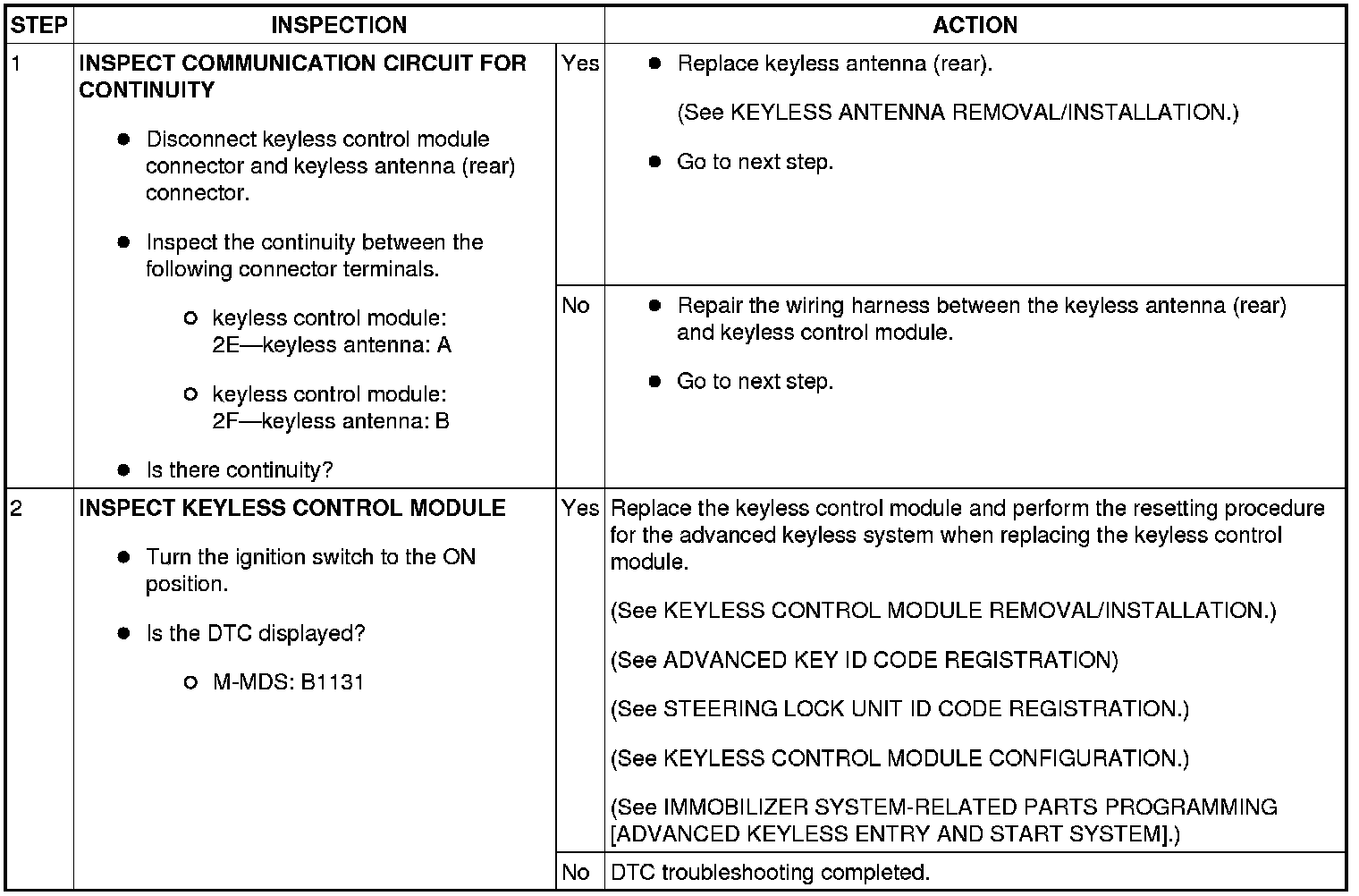 DTC B1131 [ADVANCED KEYLESS AND START SYSTEM]