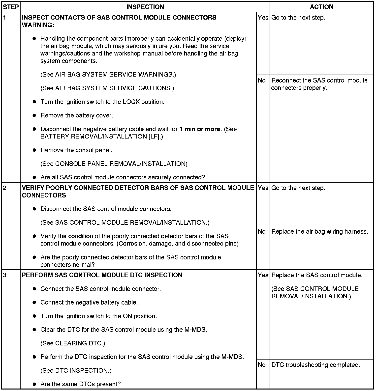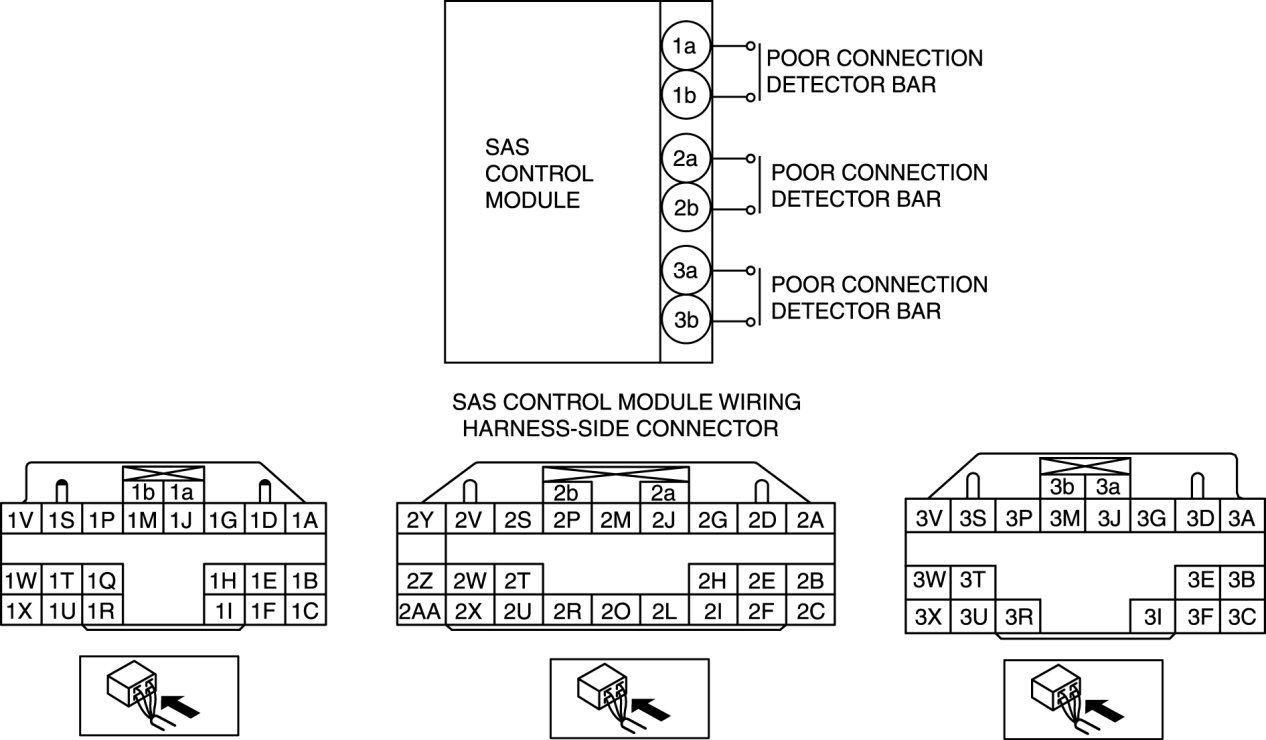 - No continuity between poorly connected detector bar terminals of the SAS control module