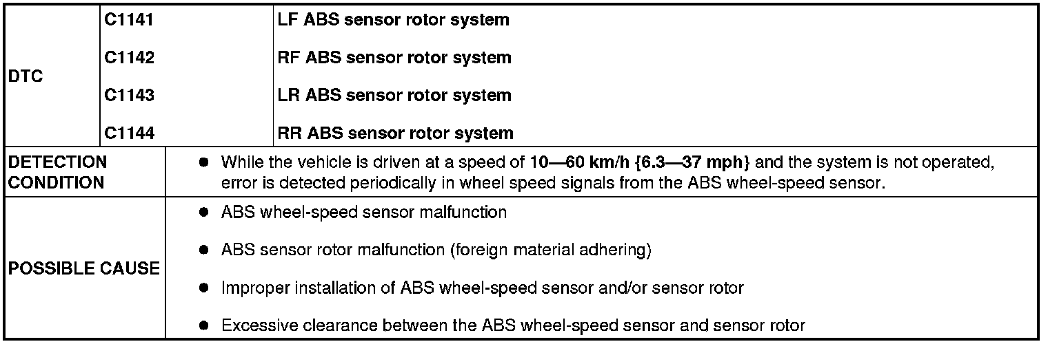 DTC C1141, C1142, C1143, C1144 [DYNAMIC STABILITY CONTROL (DSC)]