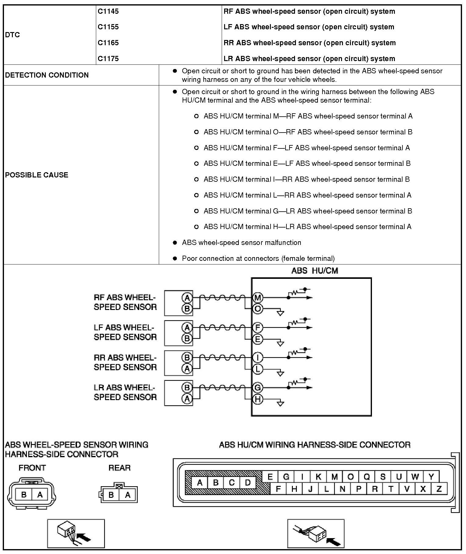 DTC C1145, C1155, C1165, C1175 [ABS]
