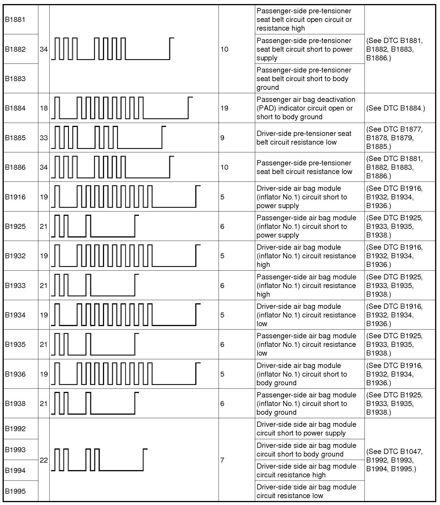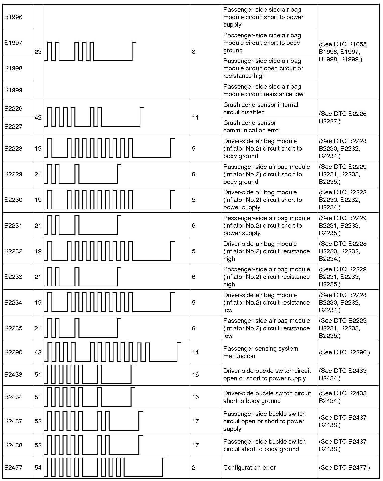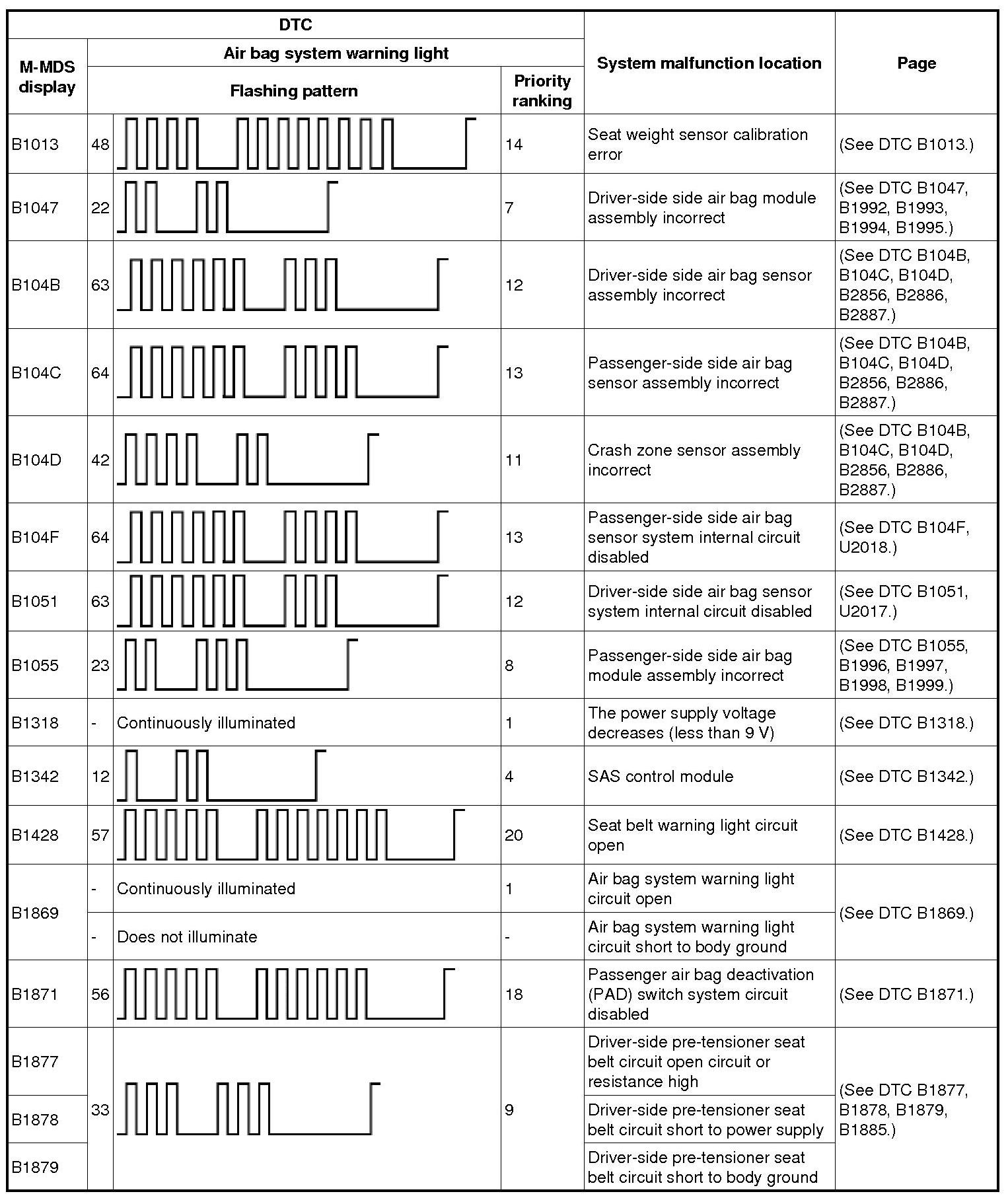 - The air bag system warning light flashes the DTC pattern for five cycles, and then remains illuminated until the ignition switch is turned to the LOCK position.