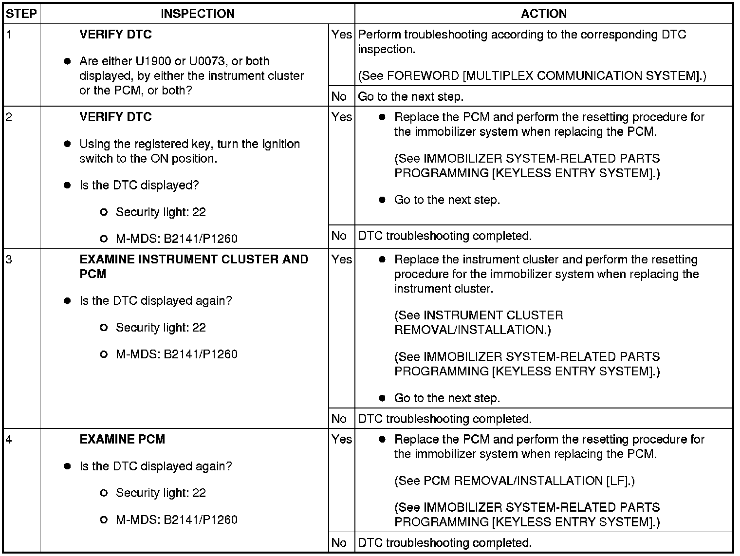 SECURITY LIGHT 22, DTC B2141 / P1260 [IMMOBILIZER SYSTEM (KEYLESS ENTRY SYSTEM)]