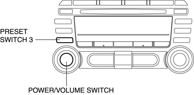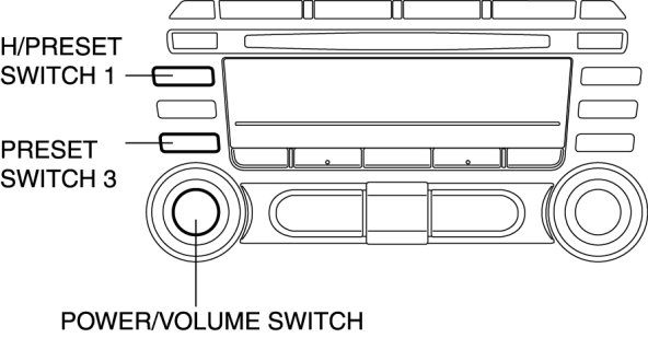 3. While pressing the POWER/VOLUME switch, simultaneously press the PRESET switch 3 for 0.2 s or more.