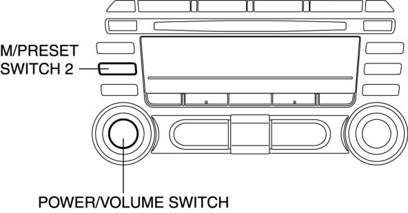 4. While pressing the POWER/VOLUME switch, simultaneously press the M/PRESET switch 2 for 0.2 s or more.