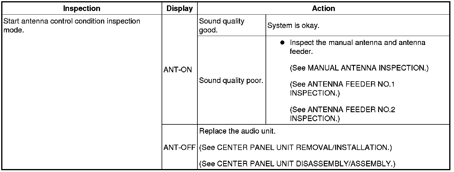 - Even if the system is normal, radio reception may be difficult depending on where the system is inspected (indoors/outdoors, or conditions at the location). Before inspecting the system, verify that radio reception is adequate.