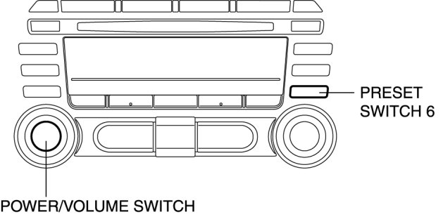 4. While pressing the POWER/VOLUME switch, simultaneously press the PRESET switch 6 for 0.2 s or more.