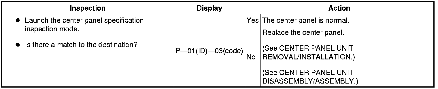 Center Panel Specification Inspection