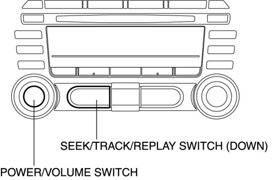 2. While pressing the POWER/VOLUME switch, simultaneously press the SEEK/TRACK/REPLAY switch (down) for 0.2 s or more.
