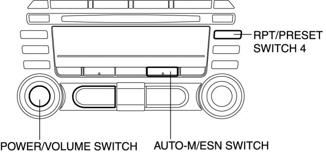 3. While pressing the POWER/VOLUME switch, simultaneously press the AUTO-M/ESN switch and RPT/PRESET switch 4 for 3 s or more.