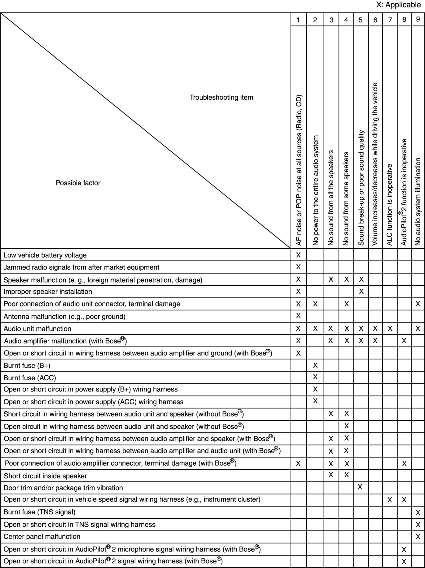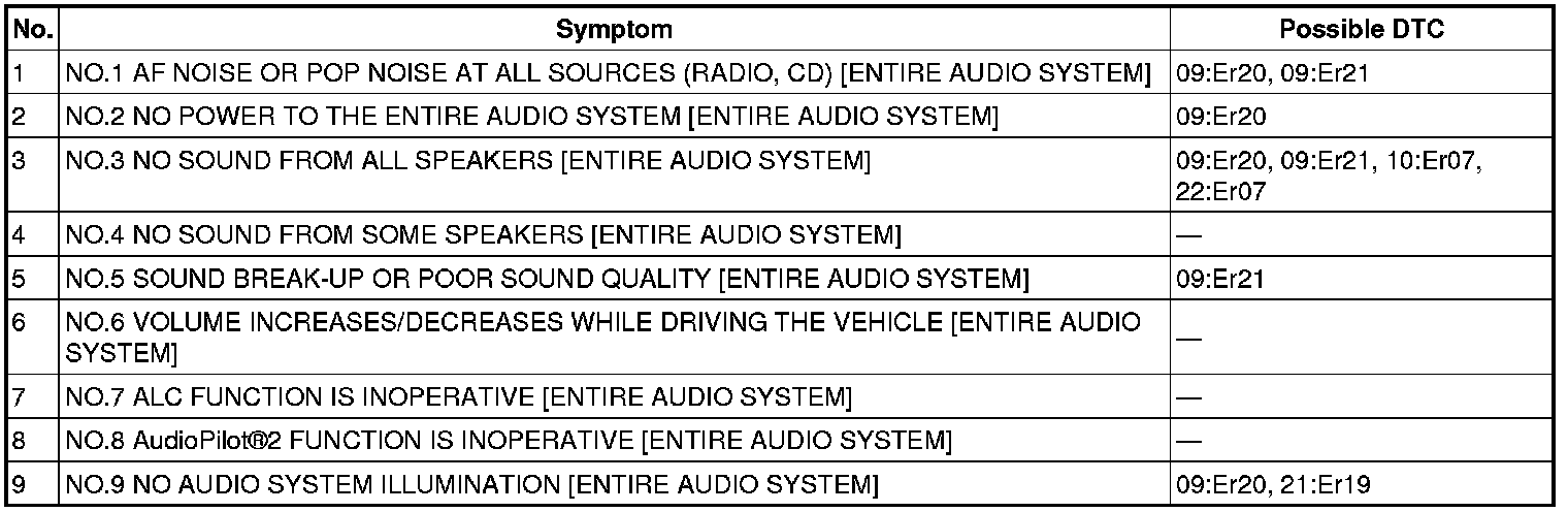 Quick Diagnostic Chart (Entire Audio System)