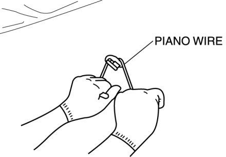 - Use a long sawing action to spread the work over the whole length of the piano wire to prevent it from breaking.Do not pull too hard to prevent damage to windshield.