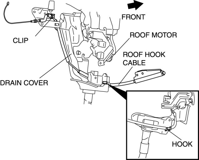 11. Remove the roof hook cable from the hook and clip shown in the figure.