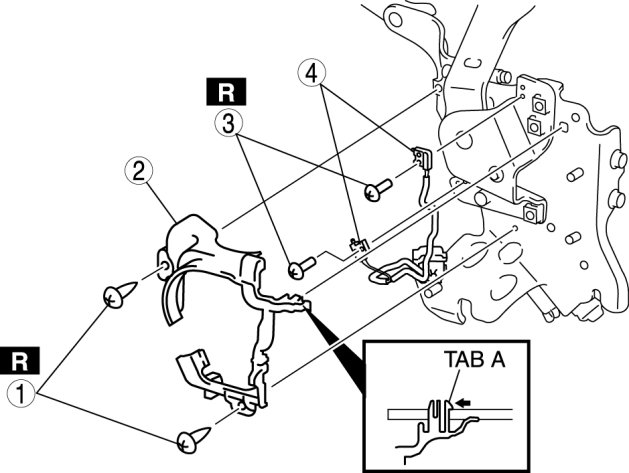 1. Install the power retractable hardtop limit switch wiring harness to the cover hook and groove shown in the figure.