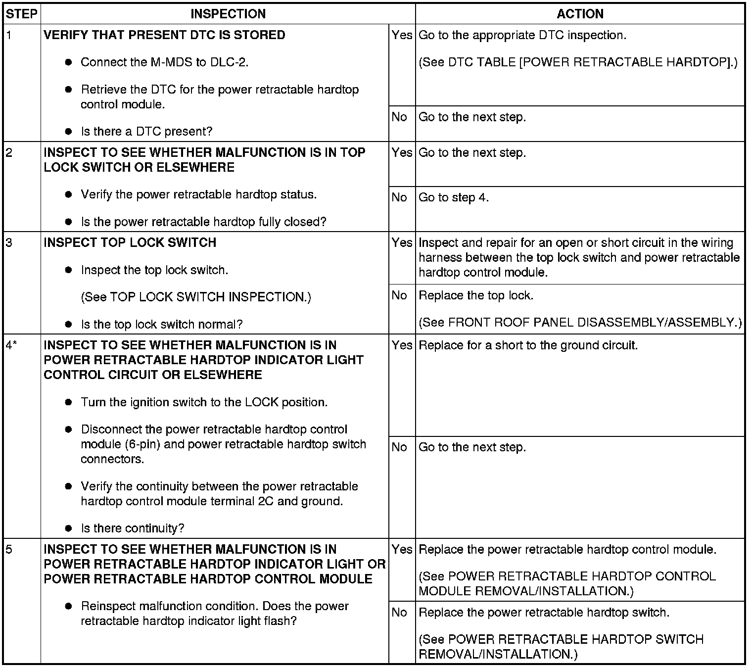 NO. 2 POWER RETRACTABLE HARDTOP INDICATOR LIGHT FLASHING [POWER RETRACTABLE HARDTOP]