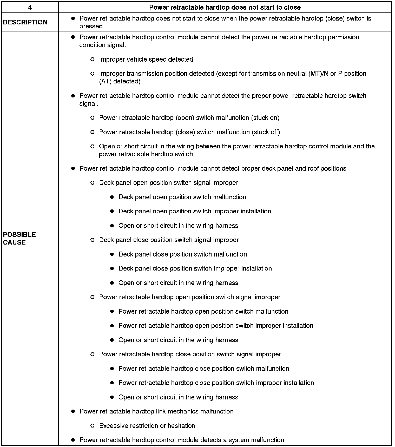 NO. 4 POWER RETRACTABLE HARDTOP DOES NOT START TO CLOSE [POWER RETRACTABLE HARDTOP]