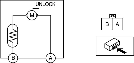 4. Apply battery positive voltage and connect the ground to the corresponding the trunk lid opener terminals, and inspect the trunk lid opener operation.