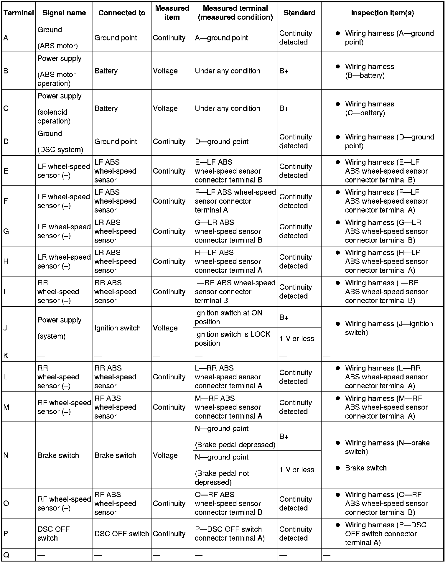 3. Attach the tester lead to the DSC HU/CM harness side connector, then inspect voltage, continuity or resistance according to the standard (reference value) on the table.