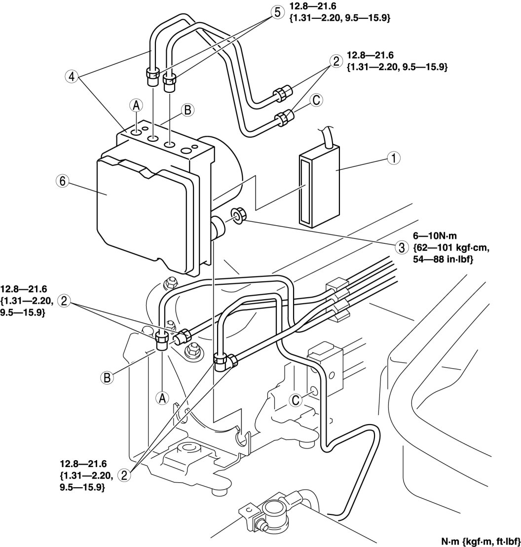 - If the brake pipes is tightened to the specified torque, it may be difficult to install it to the vehicle. Therefore, only temporarily tighten the brake pipes so that it can still be moved.
