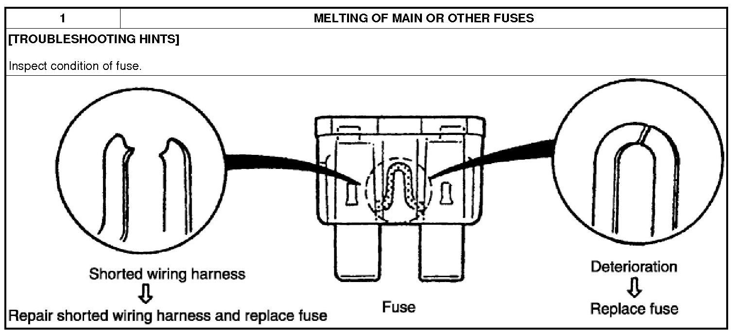 NO.1 MELTING OF MAIN OR OTHER FUSES [LF]
