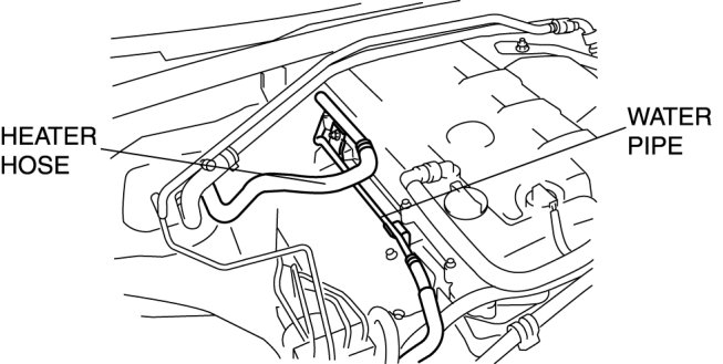 2. Move the water pipe and heater hose slightly out of the way.