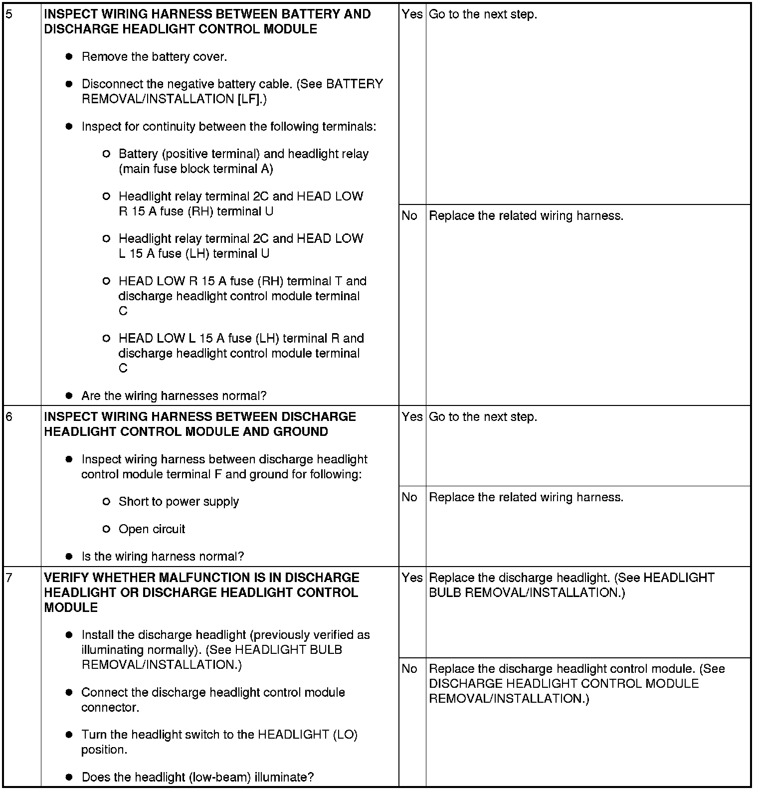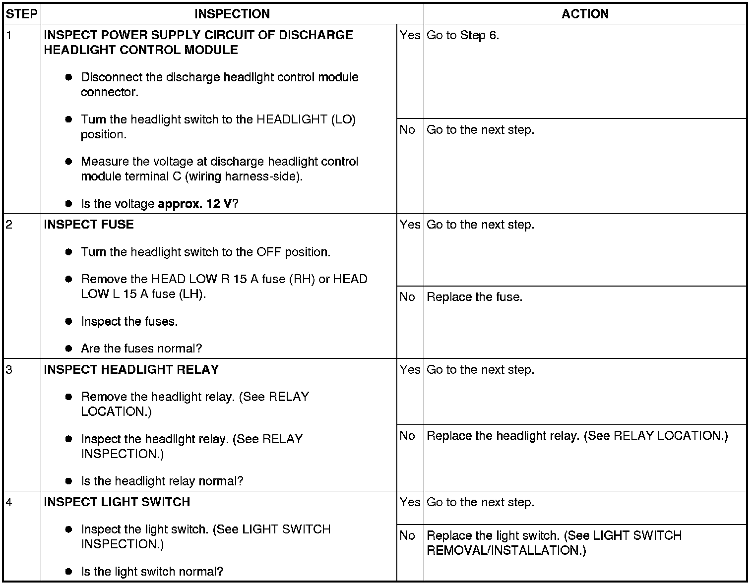 DISCHARGE HEADLIGHT SYSTEM INSPECTION